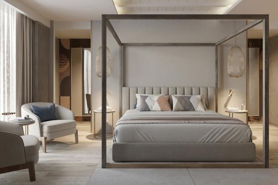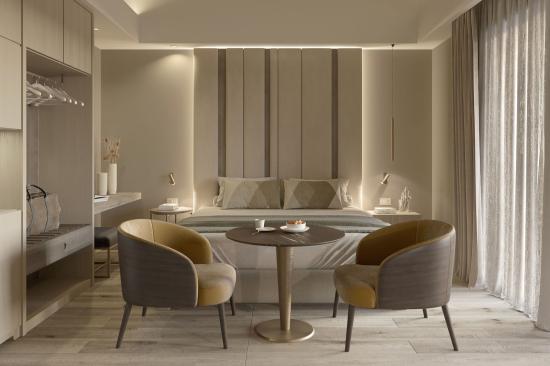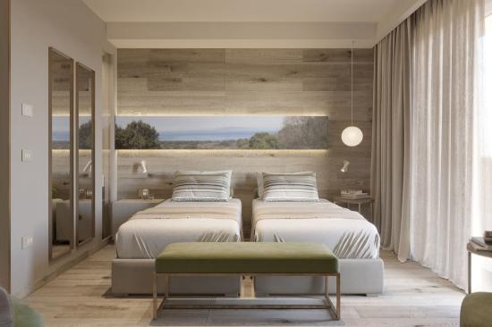 Die 31 eleganten und geräumigen Zimmer und Suiten sind in hellen und warmen Farbtönen gehalten, einige mit Blick auf das Meer andere mit Blick auf die umliegende Landschaft.
